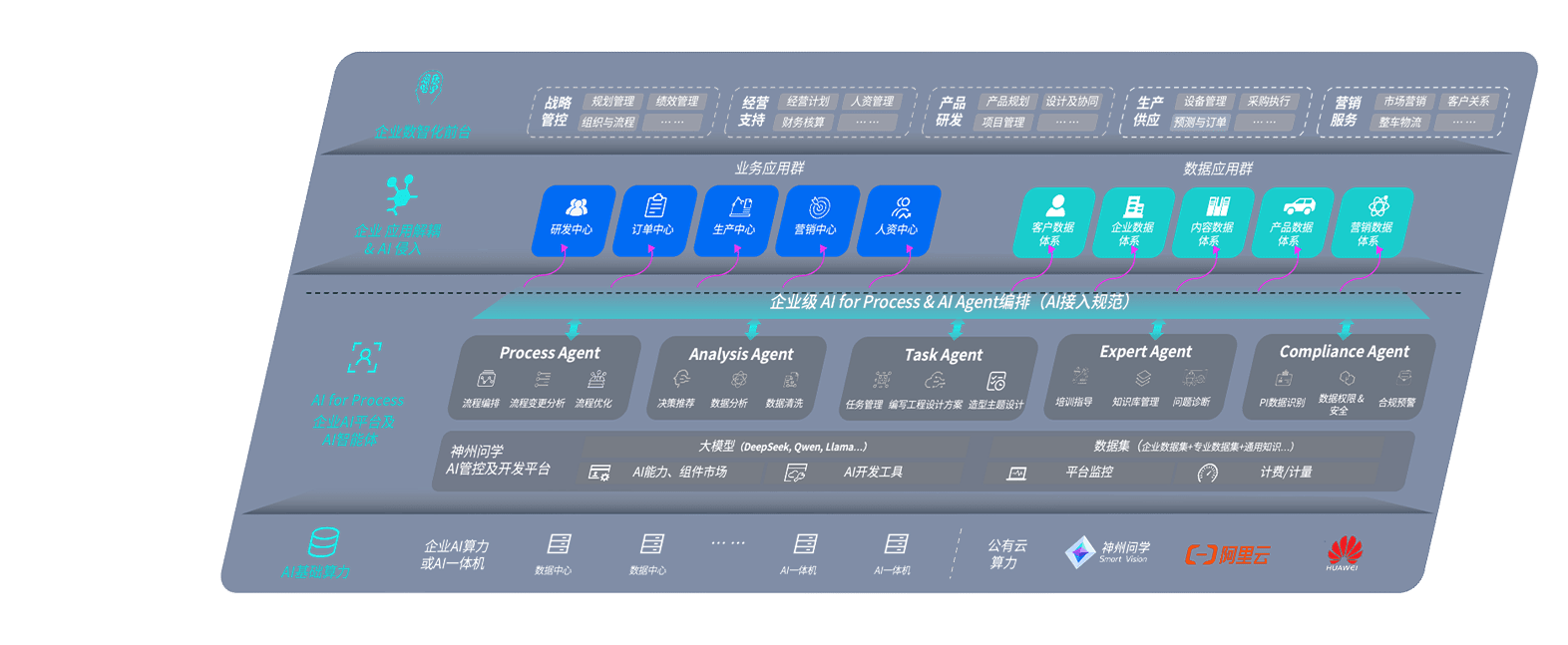 端到端的一站式AI工作空间深度融合了从企业战略规划到日常经营的全流程业务板块,,定向解决车企内部领域多、、部门多、、链条长、、、场景碎片化等难题,,支持车企快速构建以AI为核心的生产力写作体系,,,,实现任务执行与AI能力的无缝集成与交互